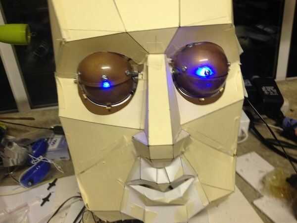 He descargado los archivos Thingiverse. Entonces medí entre los ojos de mi cara de animatronic. Ojalá hubiera anotado, pero creo que he utilizado Gimp (cualquier programa de gráficos hará) y había ampliada al 160%. Luego imprimí las piezas en papel ledger de tamaño. Si su impresora no tiene ese tamaño, podría ir a una imprenta o imprimir en 8 1/2 x 11 tramos y con cinta adhesiva.