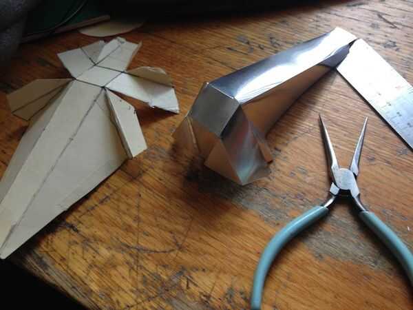 Después de cortar la forma, utilice un bolígrafo para marcar las líneas de pliegue. Ejecute el bolígrafo sobre la línea de pliegue varias veces. Utilicé needlenoses alicates para doblar el aluminio.