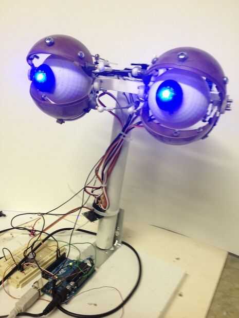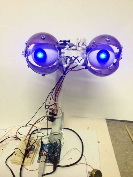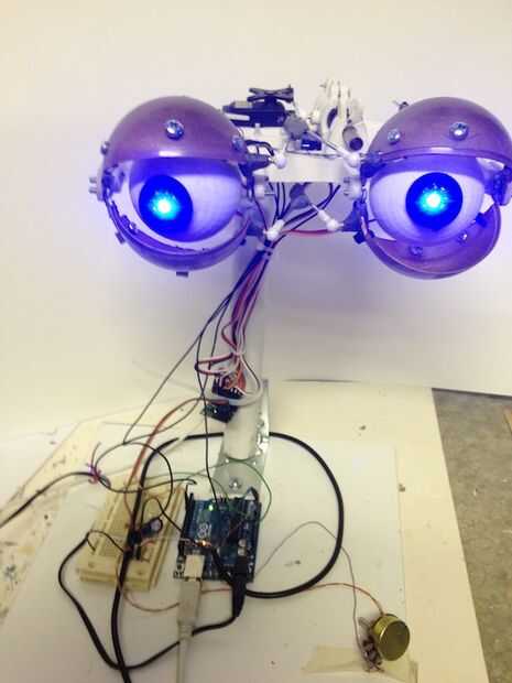 He añadido Adafruit Neopixels para los ojos. No sólo pulsando el botón Z ángulos de los párpados, pero al azar elige un color para los ojos. Me sorprende cómo brillante es las Neopixels.
