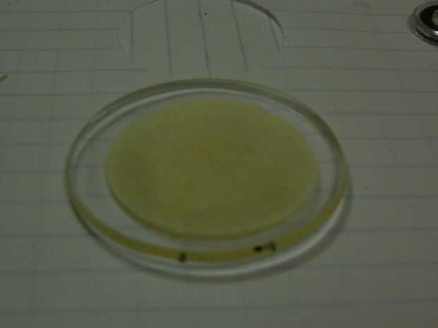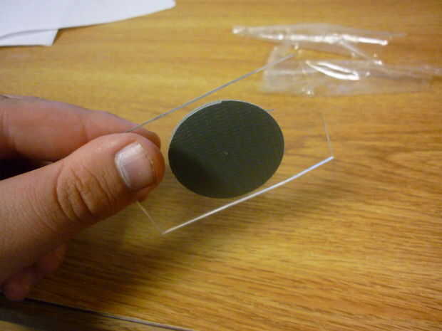 Si usted está haciendo sus ojos con gafas, asegúrese de etiquetar cada lente (izquierda y derecha) y (antes de que los pop de las gafas) de qué lado está posiblemente para arriba (tipo de deseo que hice la segunda parte en la mía). Poner sus círculos de cinta adhesiva sobre sus lentes (un círculo en cada lado) y moler sus gafas hacia abajo con la Dremel. Las gafas no olerán cuando molerlas, pero producen una gran cantidad de polvo.