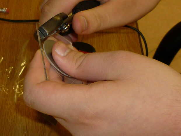 Si usted está haciendo los ojos de plexiglás, poner los 2 círculos mirándose hacia atrás a cada lado del plexiglás. Luego marcar alrededor de los círculos (anotó líneas rectas muchas veces y rompió las piezas anotadas. Si sabe cómo marcar y perforar hacia fuera de un círculo de plexiglás, me gustaría saber cómo hacerlo.) Utilice la herramienta dremel para moler abajo el plexiglás hasta llegar a la cinta de enmascarar. La cinta adhesiva actúa como un guía y un protector contra rasguños. El plexiglás se huelen y derretir un poco cuando usted muele, te sugiero buena ventilación.