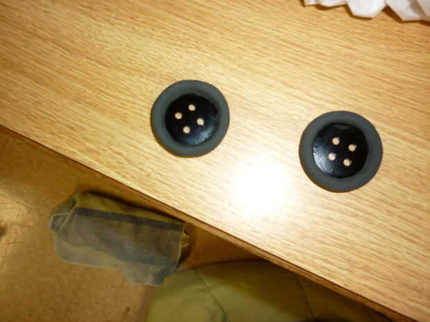 Edit: Una cosa que me olvidé de mencionar - añadir arcilla un poco extra en la parte posterior del ojo botón si usas vidrio plano o plexiglás. De lo contrario, el botón puede golpear sus párpados/pestañas dependiendo de tu forma de ojo.