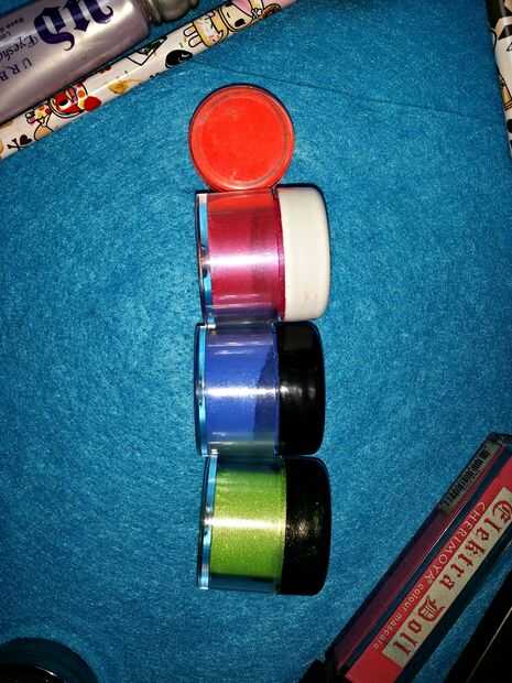 ✮4 o 5 brillante color sombras de ojos [esto es donde Sugarpill siempre domina sobre el resto!] Para la base color de rosa, usé deterioro urbano "Woodstock", y aligerado con Tokidoki "Diamante" para darle un poco de chispa mientras un rayo. Usé de Sugarpill Smitten (rosa), ajenjo (verde brillante), azúcar Royal (azul con destellos) y Neon Orange de MYO