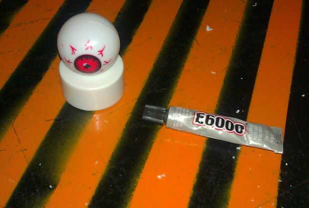 Usar una pequeña cantidad de pegamento para sostener el globo ocular en su lugar y listo!