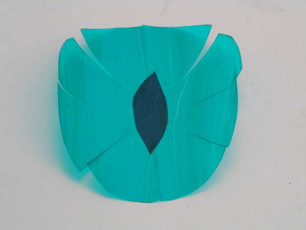 Coloque el lado pegajoso pedazo restante en el centro del color filtro 'iris', donde el círculo y las líneas han sido borradas. Liso de la pupila en el filtro de color con un paño suave y utilizar una tarjeta de crédito (algo con un borde) o itunes para eliminar posibles burbujas de aire. Envuelva la tarjeta en un paño suave o toalla de cocina para evitar dañar el tinte de la ventana 'pupila'.
