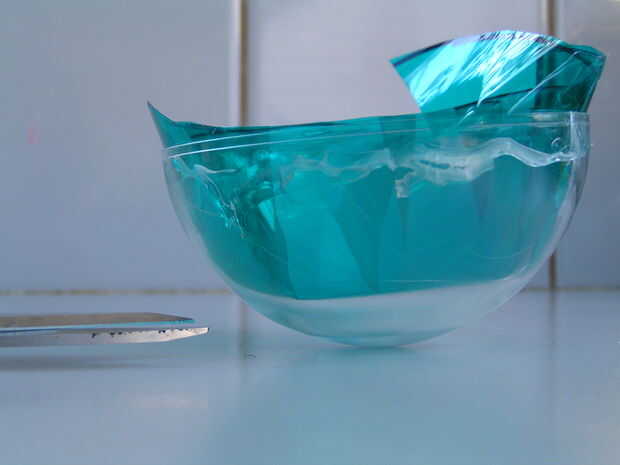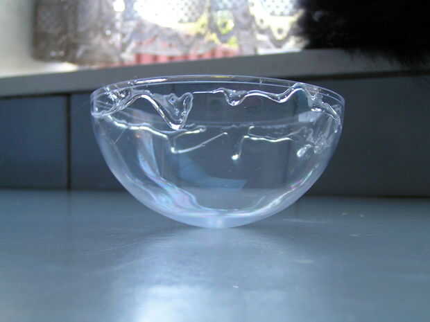Si te sientes valiente, podría reemplazar la gasa enrollada con la otra mitad de la esfera plástica. Lo probé en uno de los ojos y funcionó a la perfección para presionar los bordes exteriores de los filtros de colores en la cola... pero era demasiado áspero y causado la parte media del iris a la curva y hebilla - y permanecía manera :-( Creo que es necesario un toque de mucho cuidado.