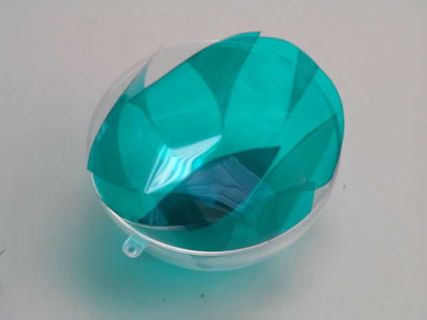 Presione el círculo de filtro de color en el orbe. Enderece para arriba rápidamente (antes de que el pegamento se endurece demasiado) si va un desproporcionado.