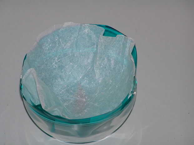 Poner un círculo de papel de cocina antiadherente en el orbe, seguido por una gasa enrollada o con otro paño suave.