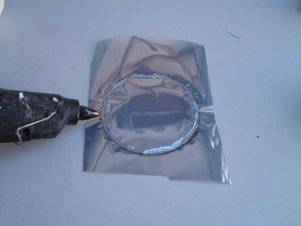 Ejecutar una línea de hotglue en, o apenas una fracción dentro del círculo marcado en el tintado.