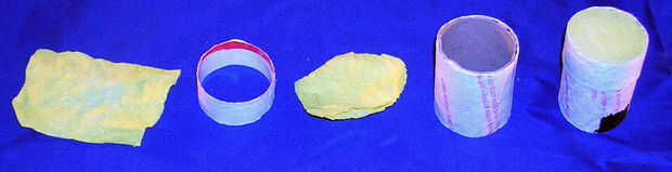 Jawa de ojos son de color amarillos, y todo lo que tengo es de LED blanco. LED tiene un estrecho haz de luz altamente direccional. Así que necesitamos algo que difunden la luz y cambiar su color. Para resolver este problema, tomé un papel toalla cubierto con mostaza amarilla, aplastado todos juntos, y luego dejarlo establecido durante varias horas en una taza, antes de lavarse. Luego lo dejo secar completamente. Ahora que tengo una toalla de papel amarillo brillante para un difusor. Corté círculos de esto sobre una media pulgada más grande que el tubo que hice en el paso 2. Luego colocar esta pieza sobre el tubo, luego tomar la manga que hice en el ultimo paso y coloque éste sobre el difusor y deslice hacia abajo sobre el tubo.
