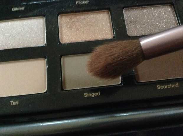 Usar una sombra marrón clara y un cepillo suave para mezclar los bordes de la sombra base. Esto debería hacerla más suave y menos áspero.