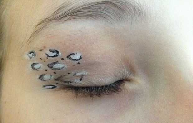 Contorno de las manchas blancas con delineador líquido negro en forma de 'U'. Añadir pequeños puntos entre los puntos.