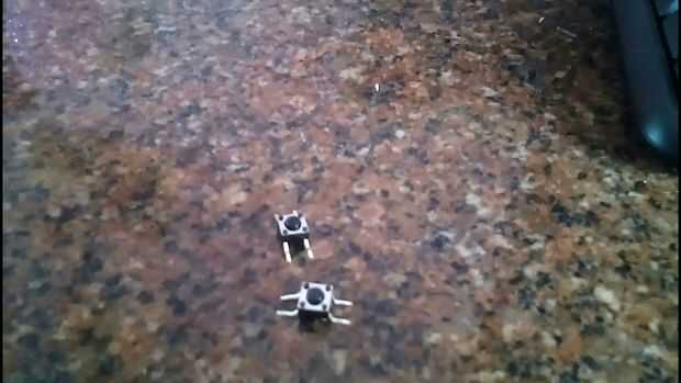 Pulsador pequeño dos Stick enciende una tira pequeña de madera con pegamento caliente y coloque un pedazo de madera más pequeños sobre los interruptores. Esto aumenta la superficie del conmutador. El empuje de dos interruptores se conectan en paralelo