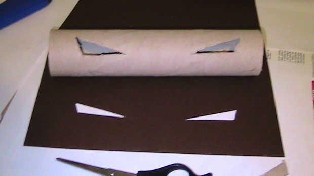 Ojos de mal dibujar en cartulina o papel de rollo y cortarlo. Tenga cuidado de usar el cortador ;)
