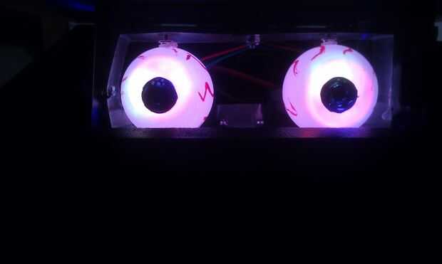 Un par de brillantes ojos rojos que le dar un vistazo a usted fuera de una caja cuando tienes cerca. Para hacerlo un poco más realista hay menor movimiento de las bolas de los ojos, se verá derecha izquierda, arriba y abajo dependiendo de la distancia a los sensores ultrasónicos.