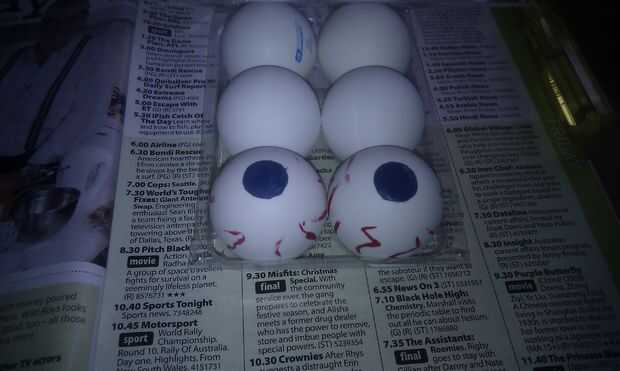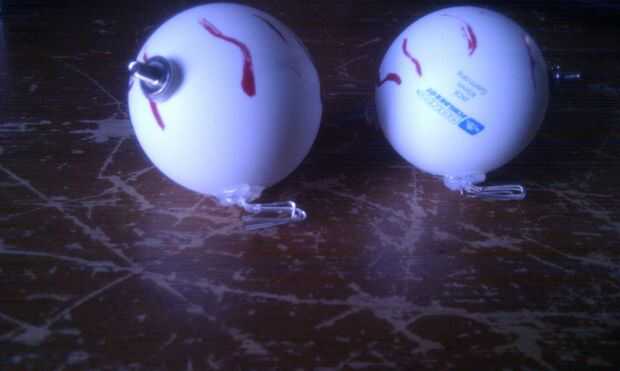 Utilizando pintura para hacer pintura en una pupila y algunos rojos de la sangre de modelo tiro las venas. Elegir ojos azules, pero el color es depende de ti.