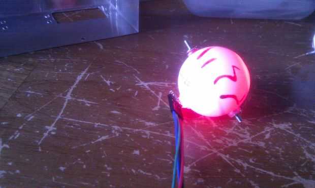 Usando un Dremil hacen un todo en la parte posterior de la bola de pin pong que se ajuste a un LED RGB 5 mm tanto como sea posible. Utilice la pistola de pegamento caliente para fijar el LED en su lugar.
