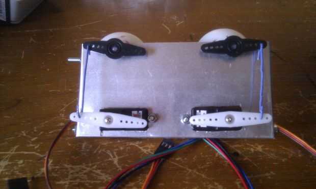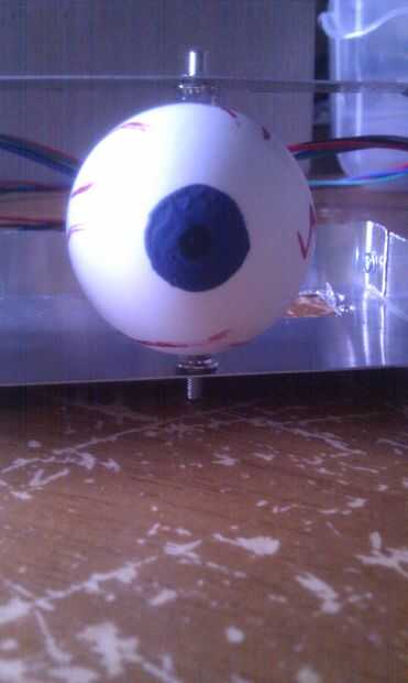 Utilizando un clip de papel conectar los servos a las bolas de ojo. (más fácil de ver la última foto abajo).