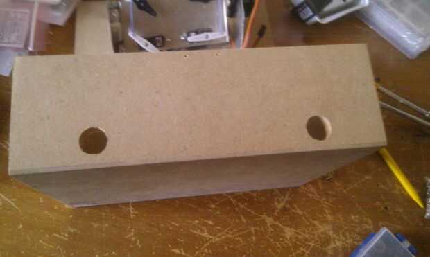 parte delantera de la caja cerca de la parte inferior utilice un Dremil para cortar los agujeros que tanto como sea posible ajustar los sensores de proximidad.