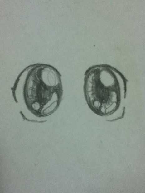 Paso 1: Dibujar esto: PPaso 2: Ad la parte inferior. Asegúrese de que tiene el cosita del conducto lagrimal del lado. (Mina se ve grande y raro lo sentimos)Paso 3: Haz un círculo cerca de la parte superior del ojo como esta.Paso 4: Oscurecer el exter