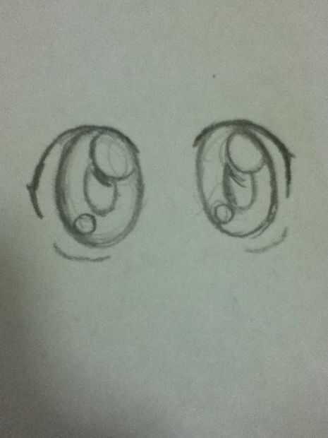 Paso 1: Dibujar esto: PPaso 2: Ad la parte inferior. Asegúrese de que tiene el cosita del conducto lagrimal del lado. (Mina se ve grande y raro lo sentimos)Paso 3: Haz un círculo cerca de la parte superior del ojo como esta.Paso 4: Oscurecer el exter