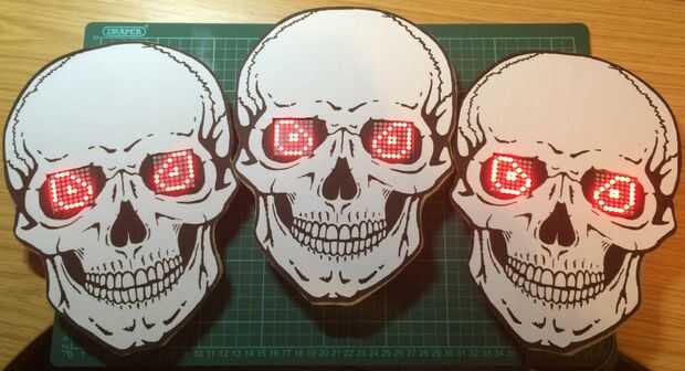 En es estado de reposo (es decir. ningún movimiento) Pulsa la tira verde brillante ultra y los zócalos del ojo en el cráneo moldeado de inyección son fijos, azul. Una vez que se detecta movimiento en el frente de la propiedad mediante un sensor PIR la tira de luz verde se enciende totalmente y las máscaras de calavera 'Males de ojo' se iluminan secuencialmente y ejecutan sus respectivas animaciones. Una banda sonora 'de miedo' se juega sobre un altavoz a la desprevenida víctima con los ojos del cráneo moldeado inyección cambia de azul a rojo en las partes hablantes de la pista.