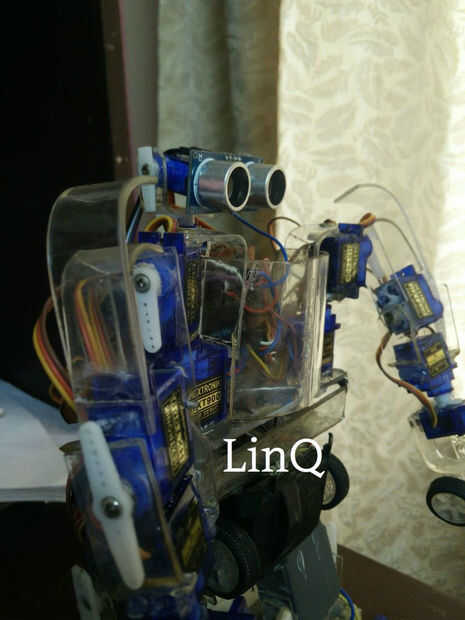 Cumplir con LinQ, un robot humanoide hecho en casa. El robot cuenta con un total de 18 DOF. 6 DOF para las piernas, DOF 10 de las manos, DOF 2 para la cabeza. Mayoría de los proyectos de robot que he visto en línea está hecha de arduino. Quería utilizar algo más y me fui con picaxe.