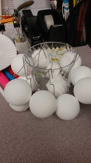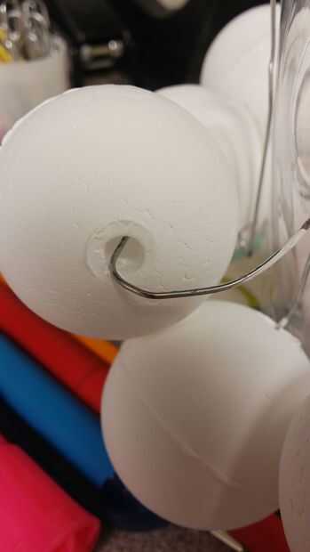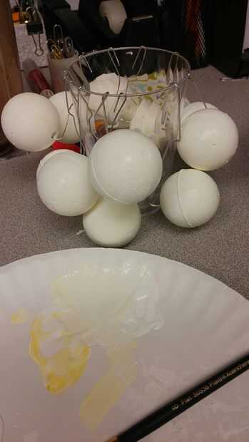 Les di una capa de blanco para intentar llenar los pequeños huecos que se encuentran en la espuma. para que se seque sin estropear la pintura, colgué los desde un borde de la taza con el otro lado de la clip doblado :)