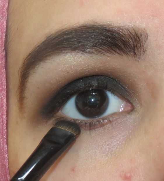Utilizando el mismo pincel corra que usamos para aplicar la sombra de ojos negra, sin productos extra en ella ejecutarlo justo debajo de la línea inferior de lash y difuminar hacia abajo.