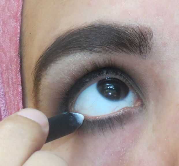 Línea de su línea de agua usando un blanco o un lápiz trazador de líneas de color nude, estoy utilizando lápiz del trazador de líneas en color prístino por younique.