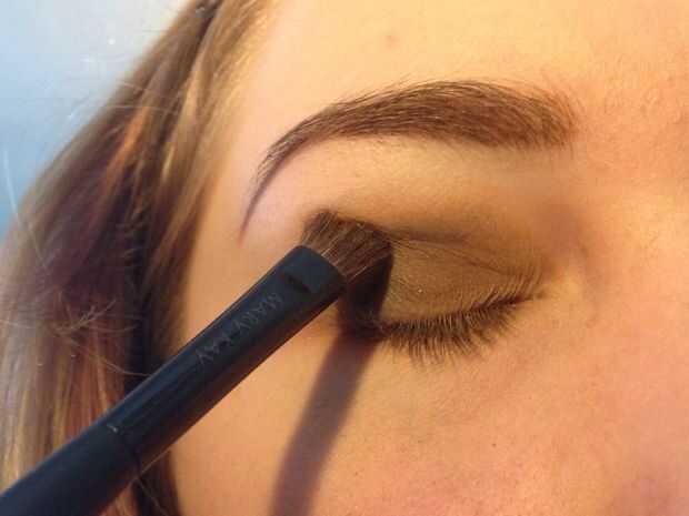 Una vez que el color en el párpado, utilizar movimientos de barrido en forma de c para mezclar hacia fuera y ligeramente hasta en su pliegue.