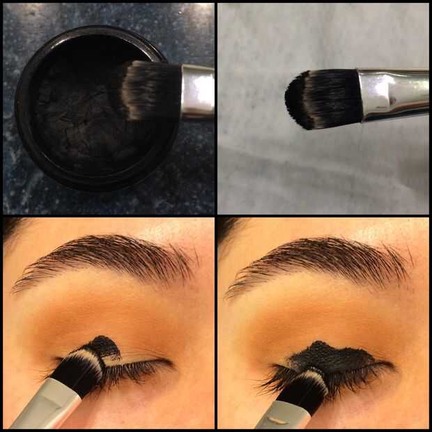 Tome su cepillo corto sombreado (estoy usando cepillo #239 de MAC) y aplicar una capa gruesa mediana de su sombra de ojos crema o delineador de ojos por toda la bola de la tapa, teniendo cuidado de no aplicar en el pliegue. La sombra negra debe detenerse justo debajo el pliegue donde acaba de aplicar nuestro marrón. La línea cerca del pliegue no tiene que ser bonito en todo. Sólo asegúrese de que el resto de la tapa es color negro azabache.
