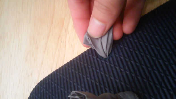 Ahora es el momento para sustituir las piezas de goma de la tela con las nuevas tiras de tela.
