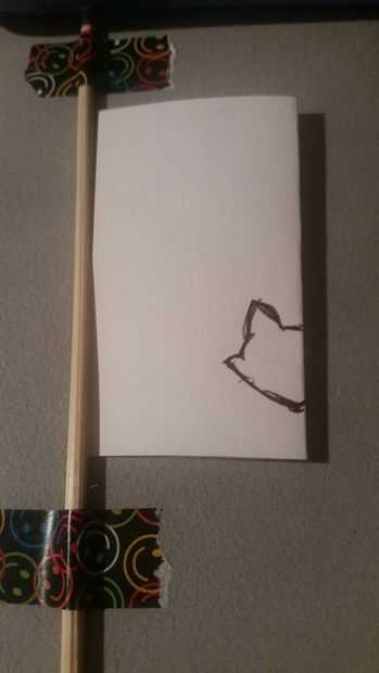 Al principio traté de dibujar la forma de un lobo en el barro y no. Dobla una tarjeta de nota por la mitad y me dibujó la mitad una cabeza de lobo en el redil. Luego que recortar y utilizar la plantilla acaba de hacer cortar la cabeza de lobo de la arcilla blanca.