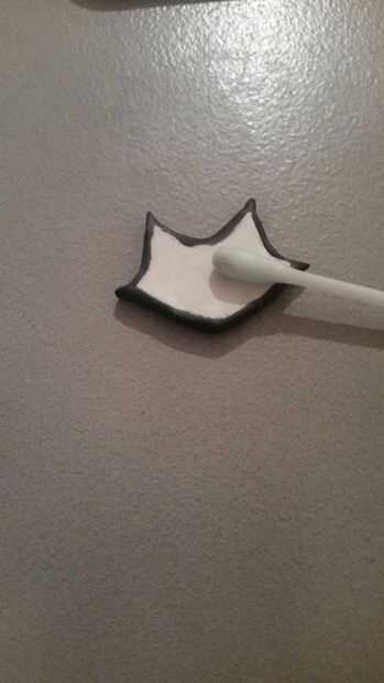 Cuando se trabaja con arcilla polimérica blanca es muy importante para mantenerla limpia. Tan con un q-tip humedecido en alcohol isopropílico limpiar la suciedad que puede haber conseguido la pieza.