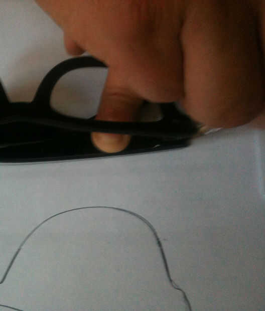 Una vez que la lente es hacia fuera, sólo poner las gafas en un pedazo de papel y empezar a dibujar. Concentrar su dibujo en sólo la mitad de las gafas y el puente. La otra que mitad lo copiamos en el paso siguiente. También dibuje un templo y una almohadilla de nariz. Tratar de trazar los contornos de los vidrios tan cerca como sea posible. El dibujo del interior de los vasos (donde se sienta la lente) es muy importante estar cerca de la forma real como sea posible. Comprobaremos esto manteniendo la lente sobre el bosquejo y rediseño.