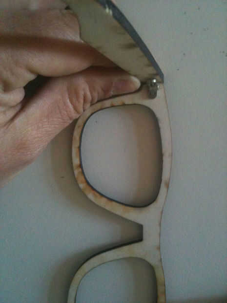 Para encajar perfectamente, las copas y los templos deben tener un ángulo de 45 grados, en el extremo donde se encuentran por lo que encajaría perfectamente una vez que abres las gafas para usarlas. Estrechamente inspeccionar una vez más las gafas originales ya que podrían presentar algunas pistas sobre cómo puede que tenga que hacer este paso. Toma delicadeza verdadera. Yo diría que este podría ser el paso más difícil de este instructable.