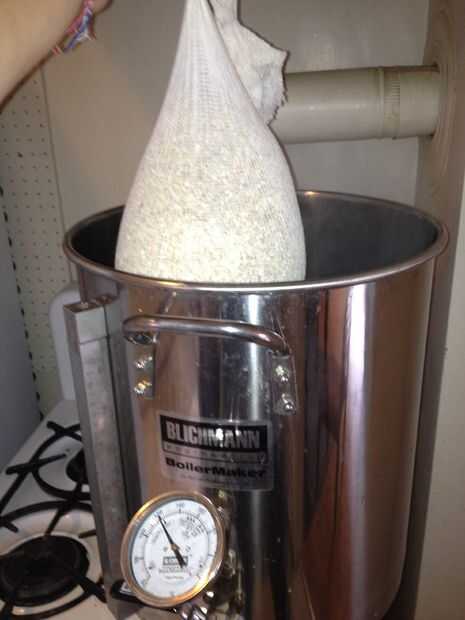 Traje de 3.5 galones de agua a 155F y había empapado los granos por 40 minutos: