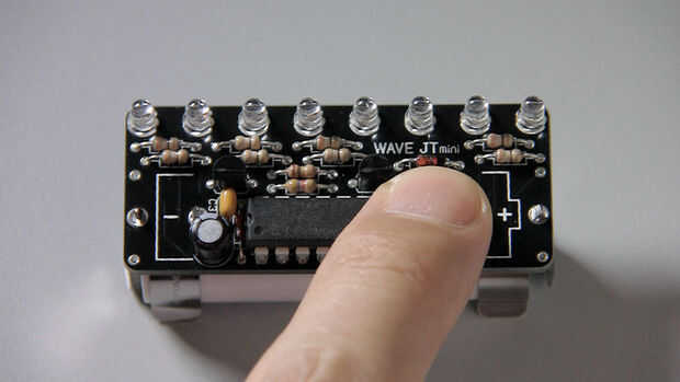Hay muchos patrones de animación flip aunque (17 patrones en FW versión 1.0), he creado un modo de "quick select". A continuación, encienda la unidad, mantenga presionado el botón durante un segundo. El LED empezará a iluminar uno por uno, de izquierda a derecha. Cada LED corresponde al número de 1 a 8, cuando usted suelta el botón, seleccione ese patrón de animación. Para que pueda elegir la de los primeros ocho patrones muy rápidamente en el encendido. patrón 9 y más voluntad tiene que ser elegido por solo grabar los epílogos de botón.