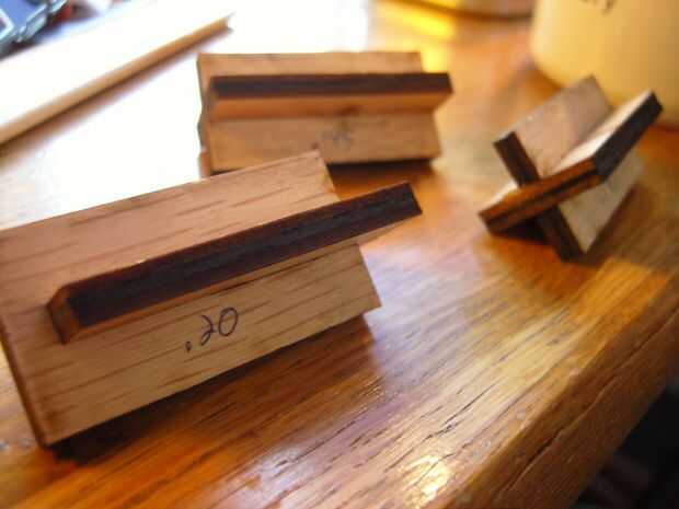 Bueno, una vez supe qué tipo de ranuras que utilizaba, hice unas plantillas de ranura poco para agregar a las espinas y secciones transversales más fácil. La idea fue medir el lugar donde reunieron las ranuras utilizando la curva de la parte superior de cada forma. Puede hacer clic a través de las dos series de imágenes, a continuación para ver cómo se hacía. Las notas de la imagen tienen todos los detalles.