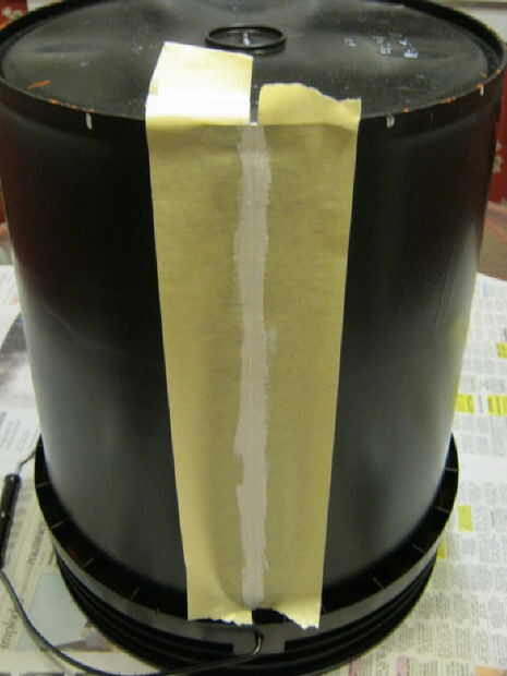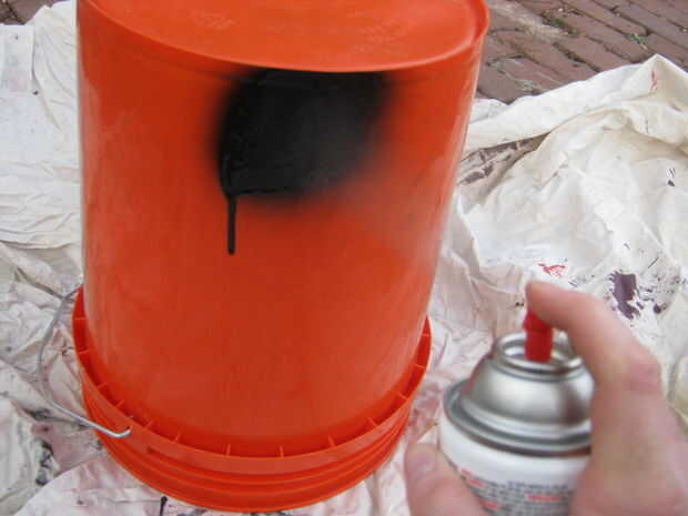El cubo de pintura: Voltear el cubo boca abajo y pintar el exterior totalmente negro con pintura en aerosol. (Asegúrese de que utilizar una pintura que se recomienda para su uso en plásticos).