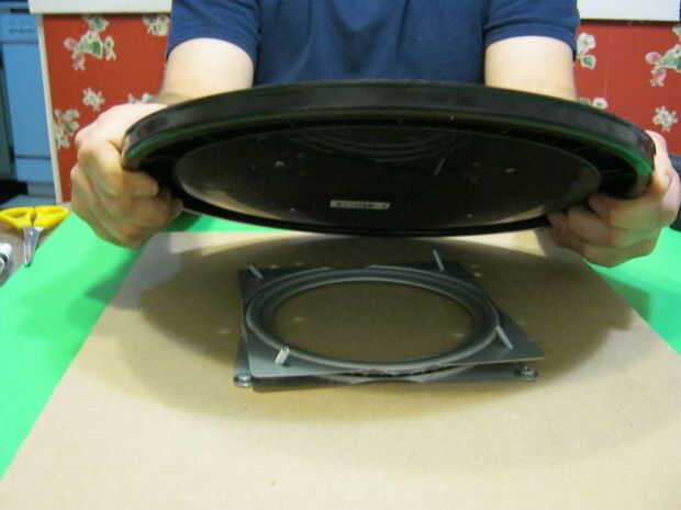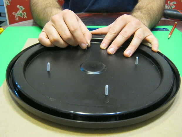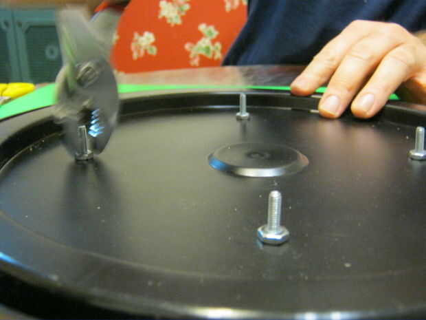 3.) uso el adecuado tamaño de las tuercas para fijar la tapa en el soporte del plato giratorio. Utilice alicates para apretar las tuercas lo máximo posible.