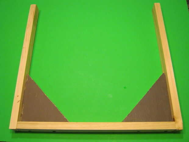 4.) para agregar una resistencia a prueba de niños, usted necesitará reforzar las esquinas del marco. Usted puede cualquiera hacer esto (como yo) con dos triángulos de madera de desecho; o, si usted no tiene ninguna madera de desecho (o le da un aspecto más pulido), puede usar algunos aparatos comprados en tiendas de la esquina.