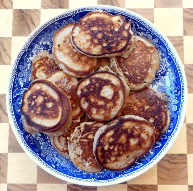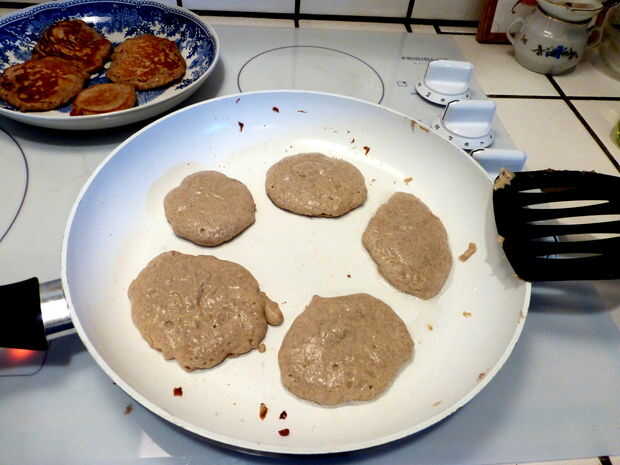 Establecer una sartén sobre fuego medio. Vierta una gota de aceite de cocina preferido, luego colocar la masa directamente de eso (así que si estás haciendo 5 tortitas, lo vierte 5 gotas de aceite). Cocinar en el primer lado hasta que se formen burbujas, voltear y cocinar por unos minutos más. Es importante que el calor no se ha establecido demasiado alto, porque entonces la parte exterior de la crepe se marrón mientras que el interior permanece crudo. Servir con mermelada o crema agria como topping.