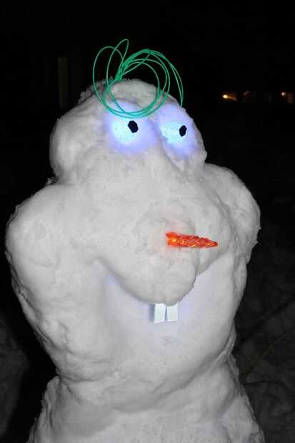 Utilice un cuchillo de cocina para hacer un espacio para insertar los dos dientes en la boca de la Olaf.