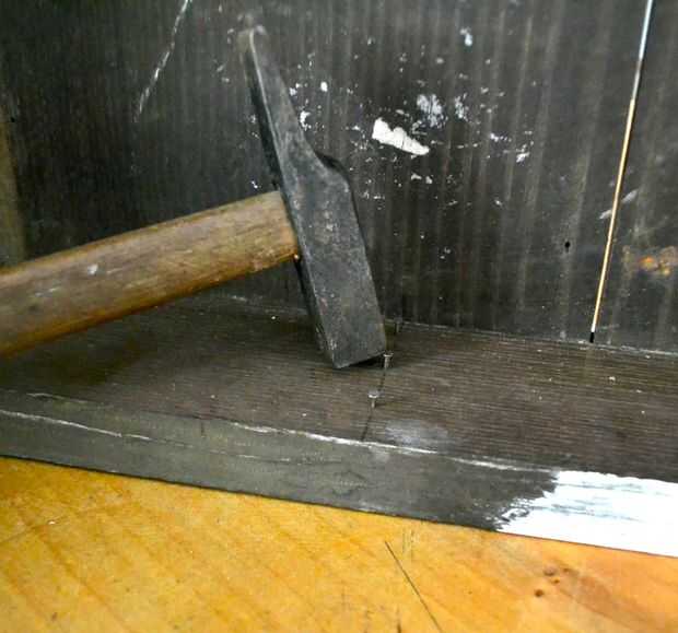 Martillo algunos clavos a lo largo de las líneas que ha realizado, donde la plataforma va a poner.