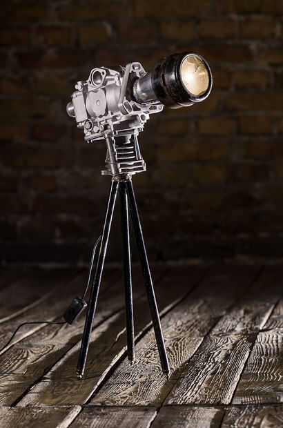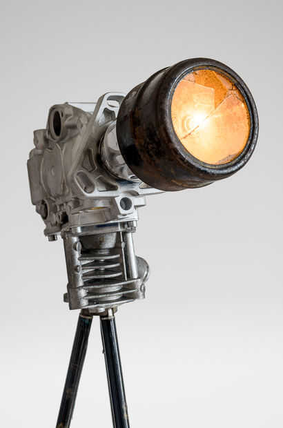Here´s otra i´ve de lámpara hecha de chatarra y carparts
