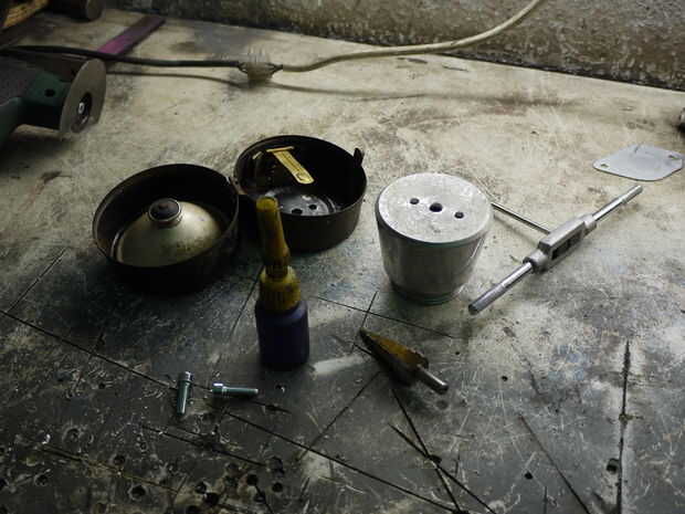 ahora la piedra de afilar abajo el hilo de lo esspresso machne, apenas para una mirada más limpia y taladrar los agujeros para fijar la lámpara y poner los cabeles a través de.