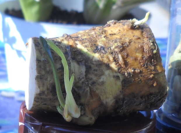 Un último punto: por cada galón de agua uso no más de 4 onzas de sal. Pesa esta cantidad en una escala. Por favor no trate de medir por volumen, utilizando, por ejemplo: Morton y esperar a que salga la 4 onzas de sal de Sal Kosher. No ocurriendo! Para los interesados este es acerca de una salmuera de fuerza de 20°. Veo un montón de recetas de dill pickle de jengibre fresco o seco. No es un sabor que me gusta en eneldo, así que usar el rábano. Creo que como los alemanes, Inglés y escandinavos desarrollaron sus recetas de encurtidos durante los años que rábano picante hubiera sido un ingrediente disponible en comparación con jengibre fresco. De todos modos, yo uso rábano, cortando el bulbo en una mandolina para hacer rondas de finas.