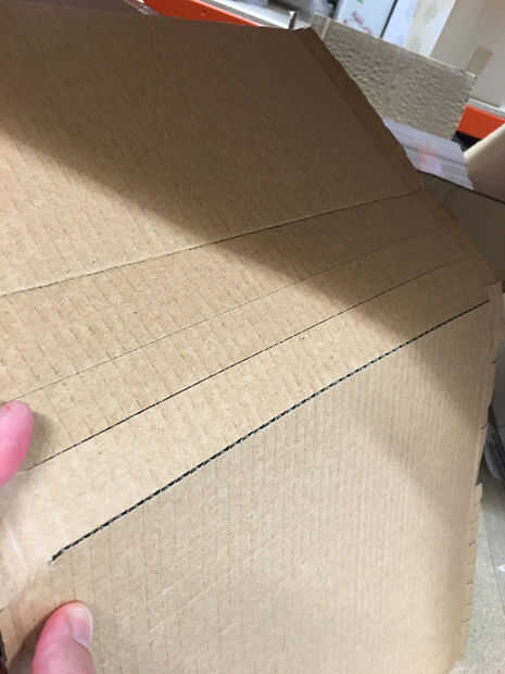 Si no tienes un pedazo de cartón corrugado (que pensé que tenía!) luego tomar una pieza plana de cartón. Marca la anchura de la caja del cuerpo sobre él.